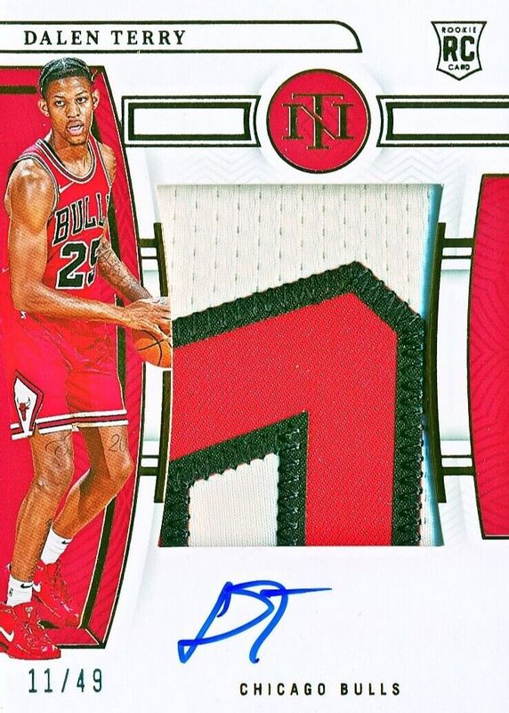 This card is 1 of 10 Dalen Terry's card variations in the 2022 National Treasures set being tracked by Sports Card Investor, including Rookie Patch Auto /99, Rookie Patch Auto - Red /75, Rookie Patch Auto - Pink /25, Rookie Patch Auto - Gold FOTL /24, and Rookie Patch Auto - Gold /10.