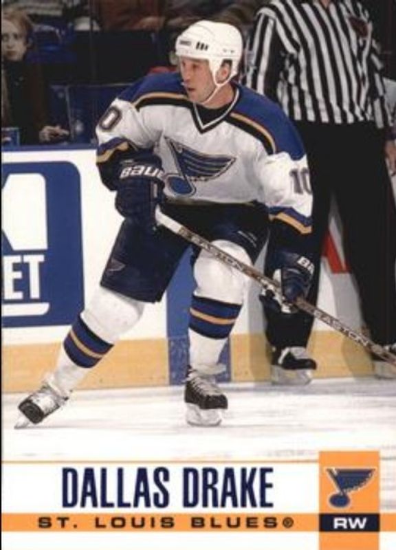 The Dallas Drake 2003 Pacific #281 Blue /250 card is 1 of 5 Dallas Drake's card variations in the 2003 Pacific set being tracked by Sports Card Investor, including Base /999, Red, L'Internationale des Collectionneurs Montreal /1, and National Convention /1.