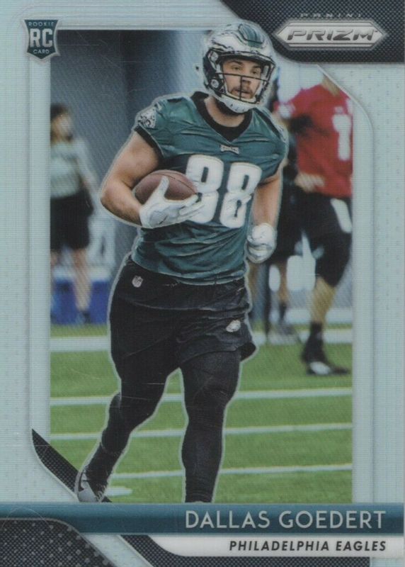 Dallas Goedert's Football cards are available in at least 42 sets. Dallas Goedert's biggest 7-day price movers are 2018 Prizm #299 Silver, 2018 Contenders #303 Rookie Ticket Auto Variation, and 2019 Immaculate #NN-DG Nameplate Nobility /6.