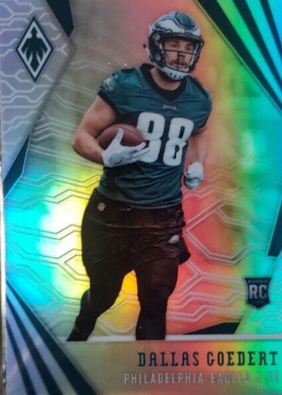 This card is 1 of 14 Dallas Goedert's card variations in the 2018 Phoenix set being tracked by Sports Card Investor, including Color Burst, Red /299, Pink /199, Purple /149, and Orange /99.