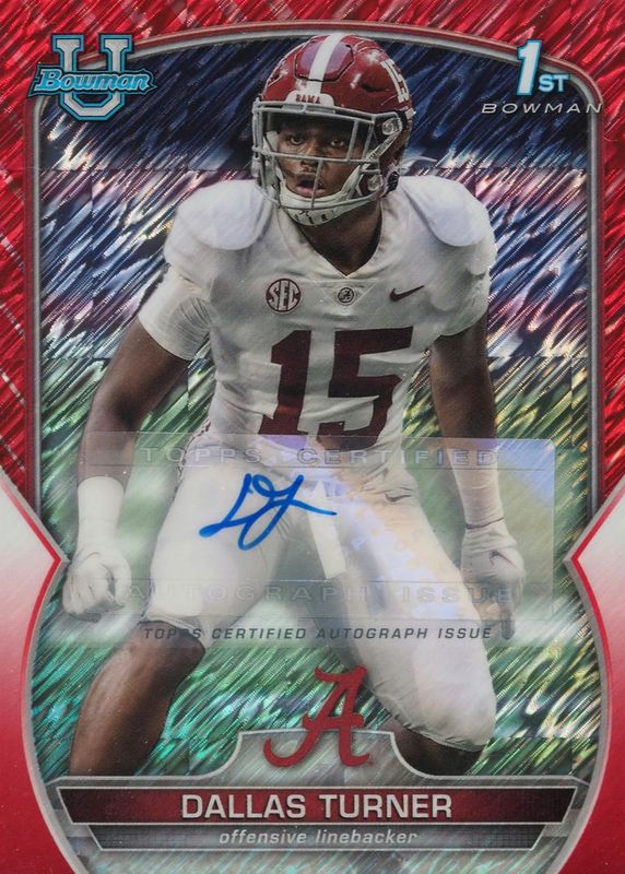 Dallas Turner 2022 Bowman Chrome University #6 Prospect Auto - Red Shimmer Refractor /5 (1st) RAW Price Guide