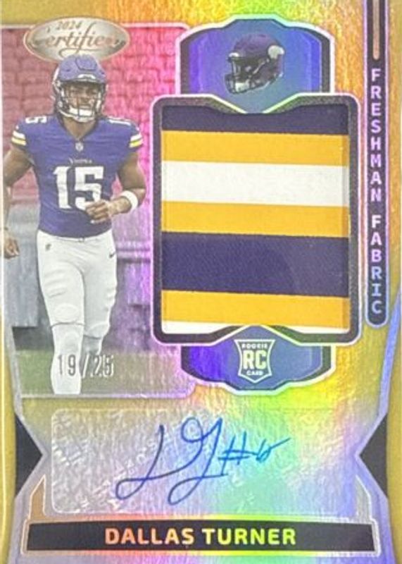 2024 CERTIFIED DALLAS TURNER FRESHMAN FABRIC GOLD AUTO/PATCH SSP#21/25-VIKING LB