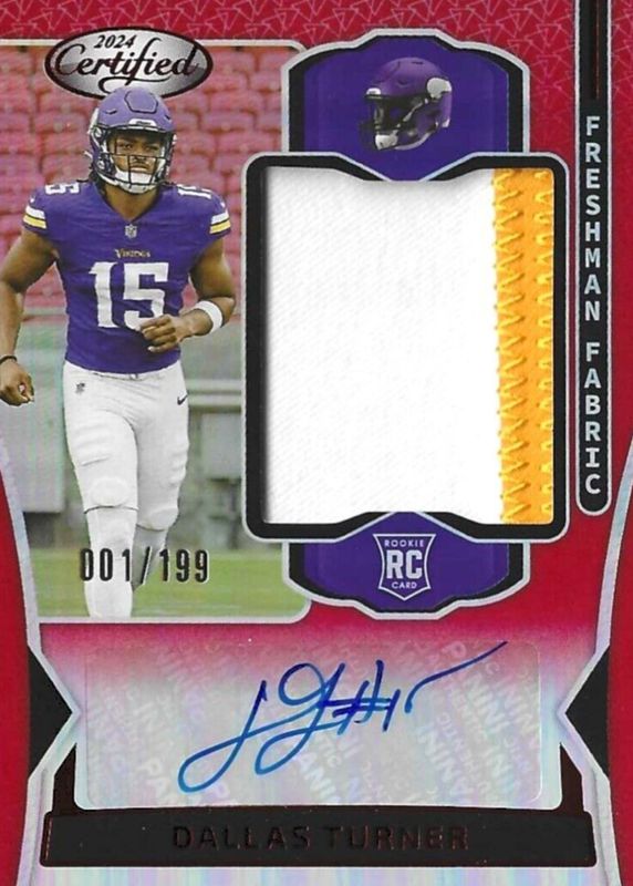 DALLAS TURNER 2024 CERTIFIED FRESHMAN FABRICS RED ROOKIE PATCH AUTO #/199