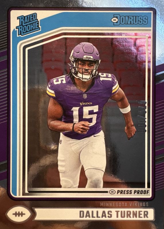 2024 Donruss DALLAS TURNER Silver Press Proof #10/100 Rated Rookie RC Vikings
