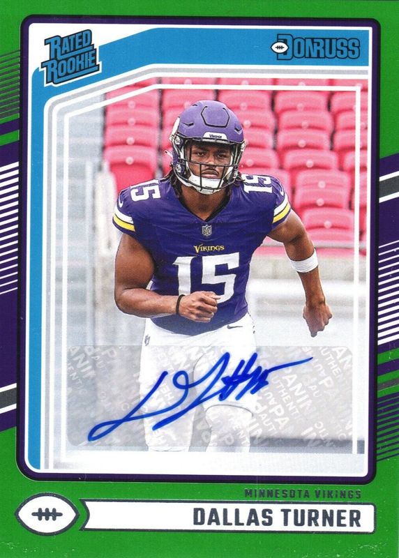 🔥Dallas Turner (RC)🔥Rated Rookie Green AUTO🔥2024 Panini Donruss - Vikings