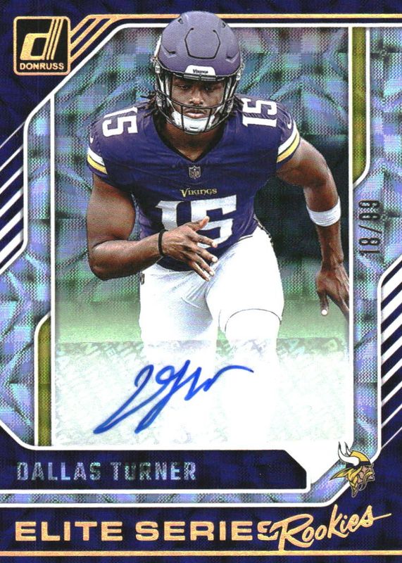 The Dallas Turner 2024 Donruss #21 The Elite Series Rookies Autographs /99 card in Raw condition has not changed in price in the last 30 days and was last sold for $15.00 .
