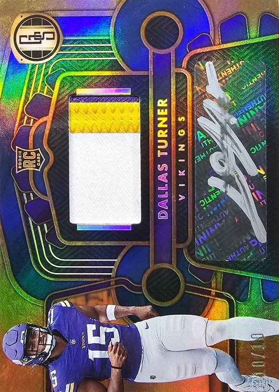 The Dallas Turner 2024 Gold Standard #222 Rookie Jersey Autographs - Sapphire /10 card in Raw condition has not changed in price in the last 30 days and was last sold for $15.50 .