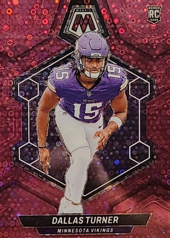 This card is 1 of 71 Dallas Turner's card variations in the 2024 Mosaic set being tracked by Sports Card Investor, including Base, Green, Mosaic, No Huddle, and Pink Camo.