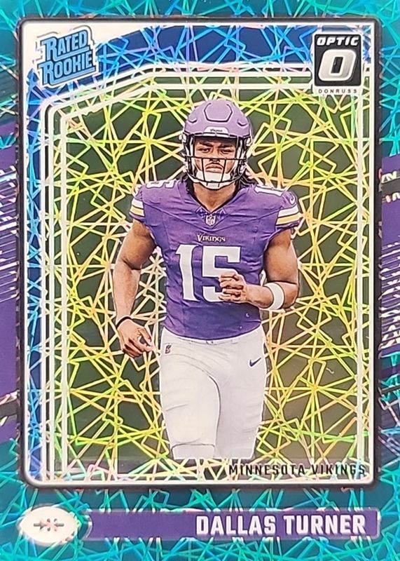 The Dallas Turner 2024 Optic #224 Green Velocity Rookie card in Raw condition has not changed in price in the last 30 days and was last sold for $0.99 .