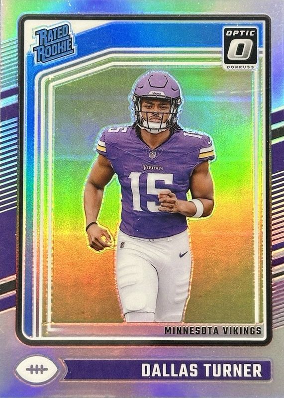 The Dallas Turner 2024 Optic #224 Holo Rookie card in Raw condition has moved up $2.25 (+225%) in the last 30 days and was last sold for $3.25 .