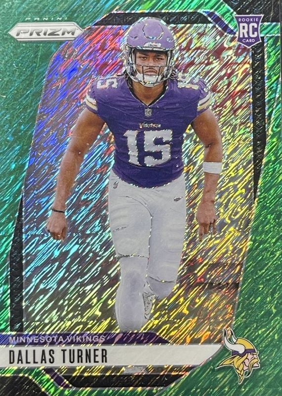 The Dallas Turner 2024 Prizm #324 Green Shimmer /5 Rookie card in Raw condition has not changed in price in the last 30 days and was last sold for $31.00 .