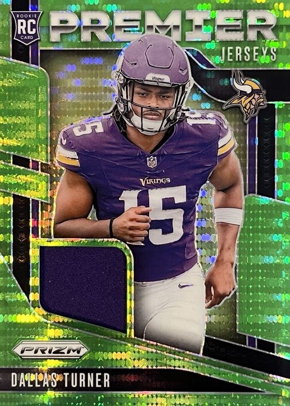 Dallas Turner 2024 Prizm Premier Jerseys Rookie Green Pulsar Vikings
