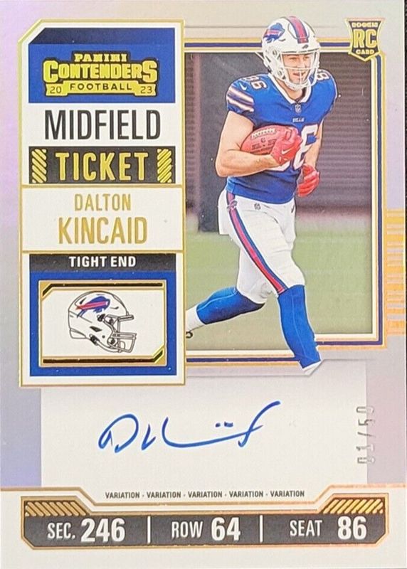 Best Prices Available For Sale of Dalton Kincaid 2023 Contenders #107 Rookie Ticket Auto Variation - Midfield Ticket /50