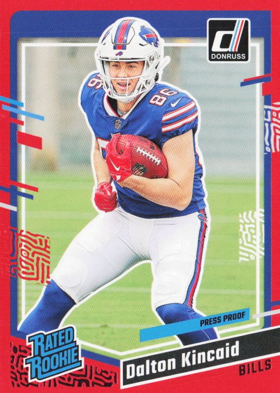 The Dalton Kincaid 2023 Donruss #308 Press Proof Red Rookie card in Raw condition has not changed in price in the last 30 days and was last sold for $1.99 .