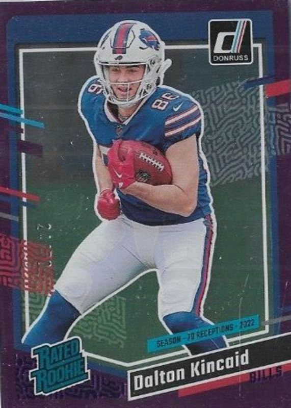 DALTON KINCAID 2023 PANINI DONRUSS RATED ROOKIE SEASON STAT PARALLEL 24/70 #308