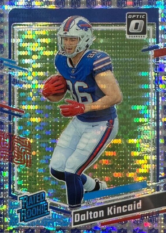 This card is 1 of 78 Dalton Kincaid's card variations in the 2023 Optic set being tracked by Sports Card Investor, including Base, Blue Hyper, Blue Scope, Green Hyper, and Green Velocity.