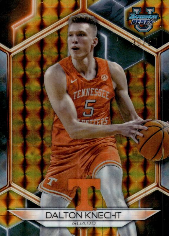 This card is 1 of 27 Dalton Knecht's card variations in the 2023 Bowman Best University set being tracked by Sports Card Investor, including Base, Refractor, Speckle Refractor, Blue Refractor /150, and Pink Lava Refractor /100.