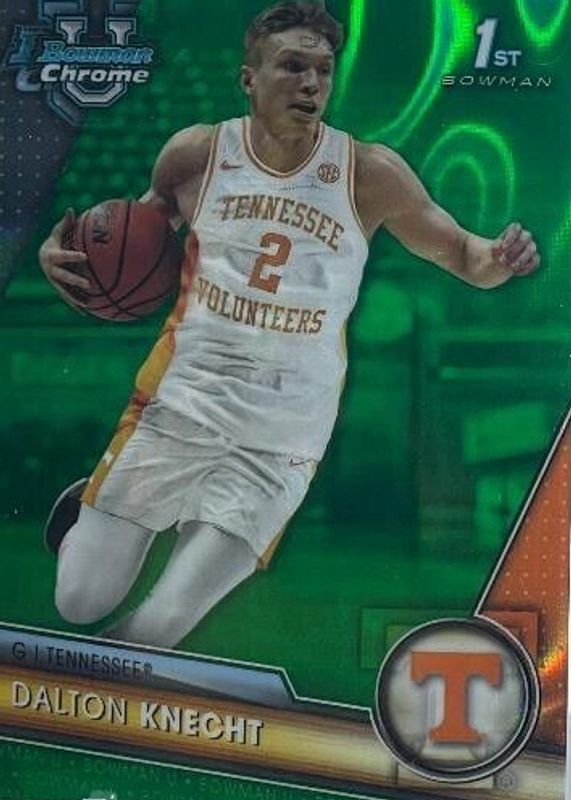 The Dalton Knecht 2023 Bowman Chrome University #48 Green Refractor /99 (1st) card in Raw condition has not changed in price in the last 30 days and was last sold for $7.50 .