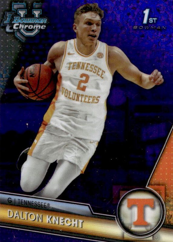This card is 1 of 38 Dalton Knecht's card variations in the 2023 Bowman Chrome University set being tracked by Sports Card Investor, including Base (1st), Pink Refractor (1st), Purple Shimmer Refractor (1st), Refractor (1st), and X-Fractor (1st).