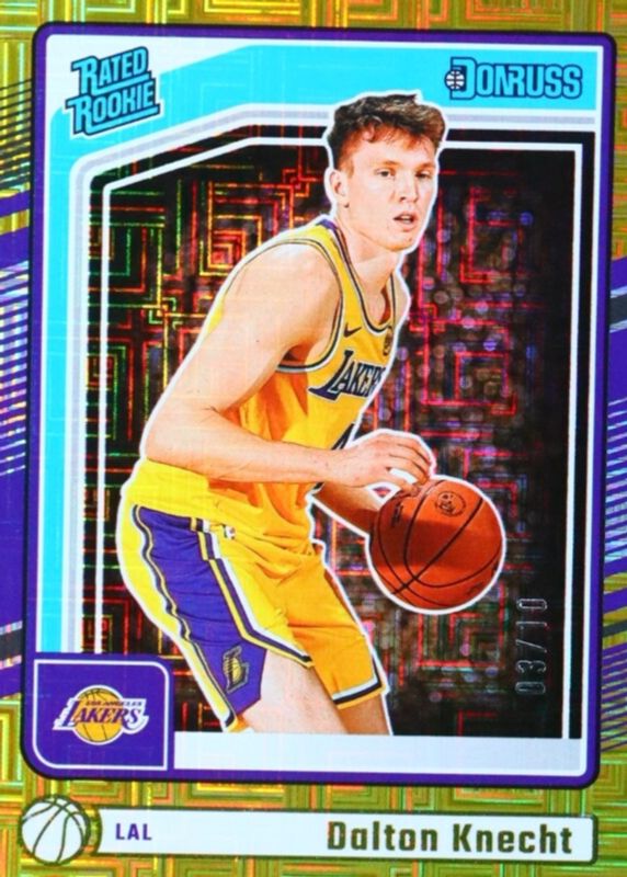 The Dalton Knecht 2024 Donruss #227 Choice Gold /10 Rookie card in Raw condition has not changed in price in the last 30 days and was last sold for $160.50 .