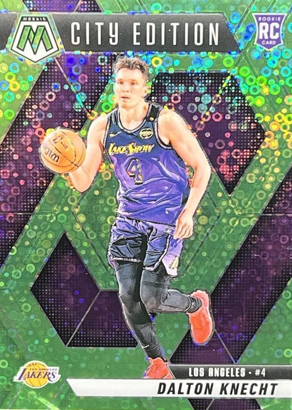 The Dalton Knecht 2024 Mosaic #271 City Edition - Fast Break Neon Green /5 Rookie card in Raw condition has not changed in price in the last 30 days and was last sold for $48.88 .