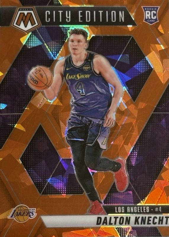The Dalton Knecht 2024 Mosaic #271 City Edition - Orange Ice /49 Rookie card in Raw condition has not changed in price in the last 30 days and was last sold for $6.00 .