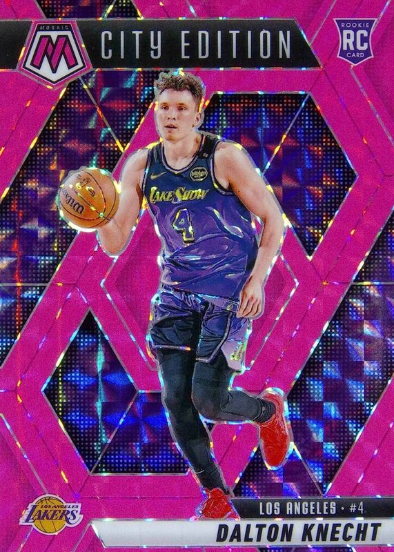 The Dalton Knecht 2024 Mosaic #271 City Edition - Pink Fluorescent /10 Rookie card in Raw condition has not changed in price in the last 30 days and was last sold for $30.90 .