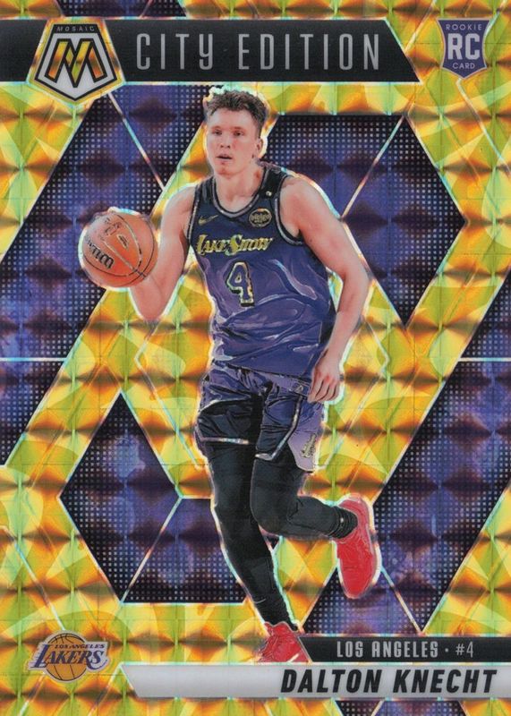 The Dalton Knecht 2024 Mosaic #271 City Edition - Reactive Yellow Rookie card in Raw condition has moved down -$0.26 (-20.8%) in the last 30 days and was last sold for $0.99 .