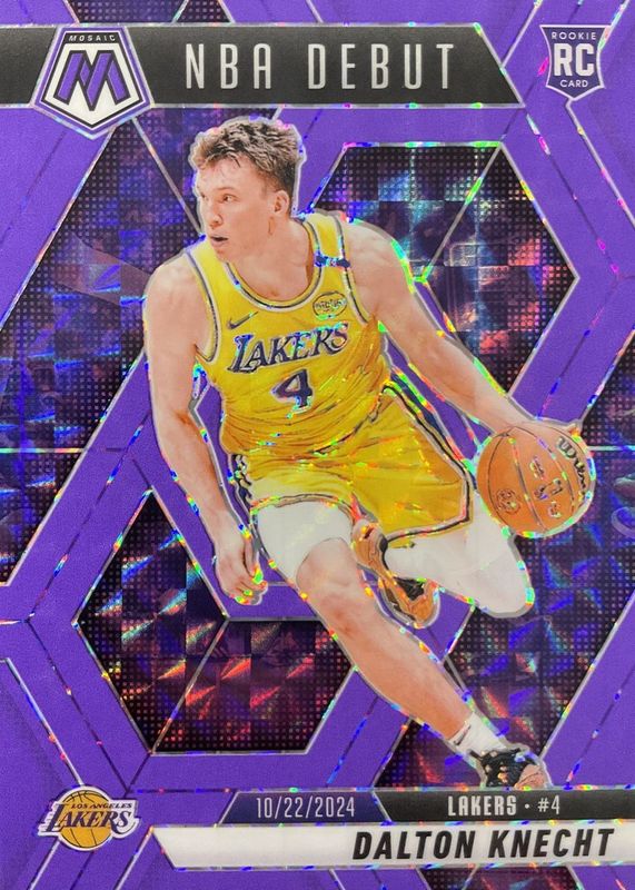 2024-25 Mosaic Dalton Knecht FLUORESCENT PURPLE NBA DEBUT #'d /249 Lakers RC