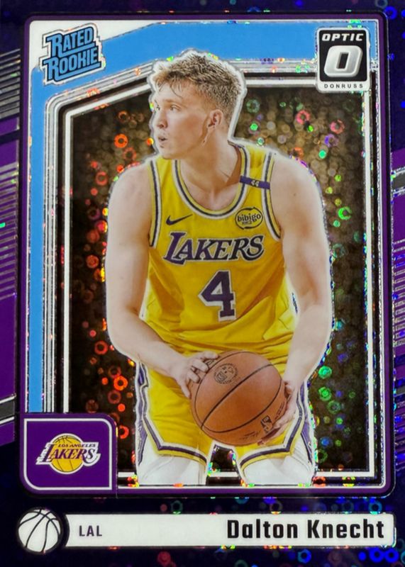 The Dalton Knecht 2024 Optic #256 Fast Break Purple /99 Rookie card in Raw condition has not changed in price in the last 30 days and was last sold for $9.44 .