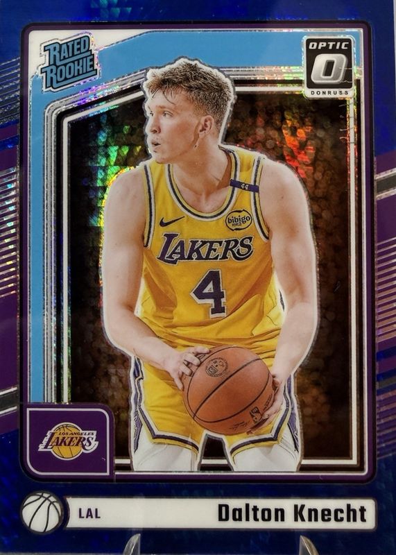 The Dalton Knecht 2024 Optic #256 Hyper Blue /175 Rookie card in Raw condition has not changed in price in the last 30 days and was last sold for $5.00 .