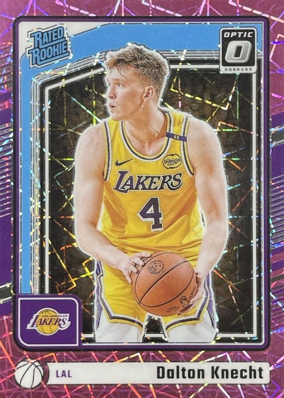 The Dalton Knecht 2024 Optic #256 Pink Velocity /79 Rookie card in Raw condition has not changed in price in the last 30 days and was last sold for $0.99 .