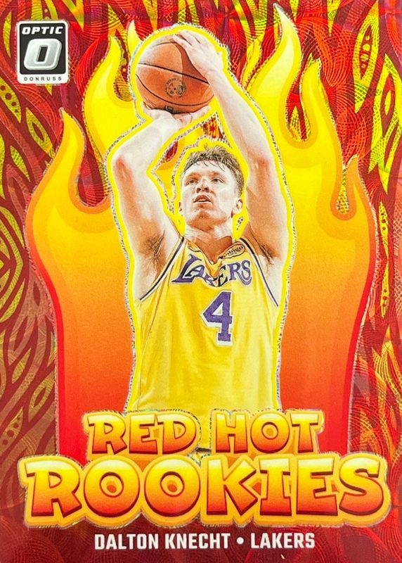 The Dalton Knecht 2024 Optic #10 Red Hot Rookies - International Red & Gold /99 card in Raw condition has moved up $2.50 (+83.3%) in the last 30 days and was last sold for $5.50 .