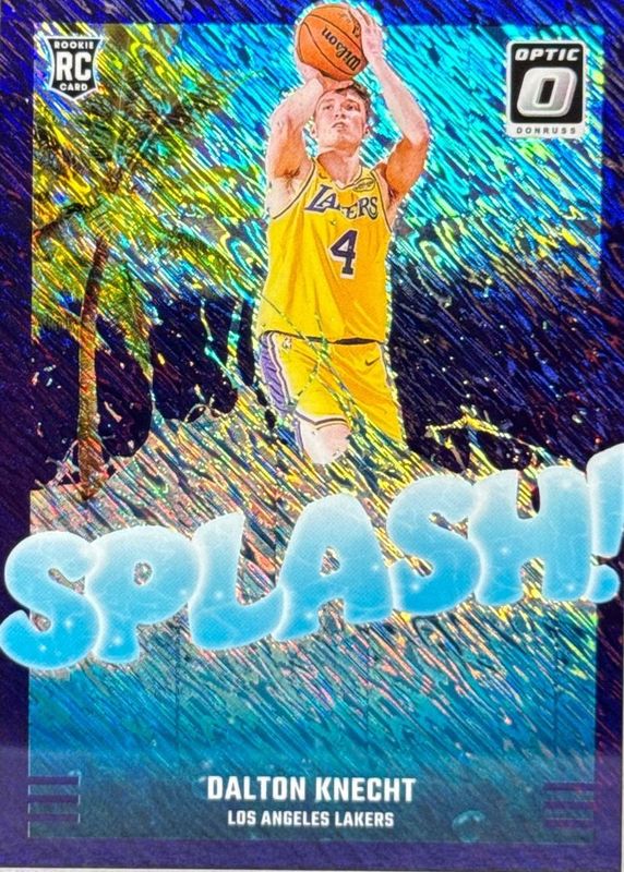 The Dalton Knecht 2024 Optic #12 Splash! - Purple Shimmer Rookie card in Raw condition has not changed in price in the last 30 days and was last sold for $3.25 .
