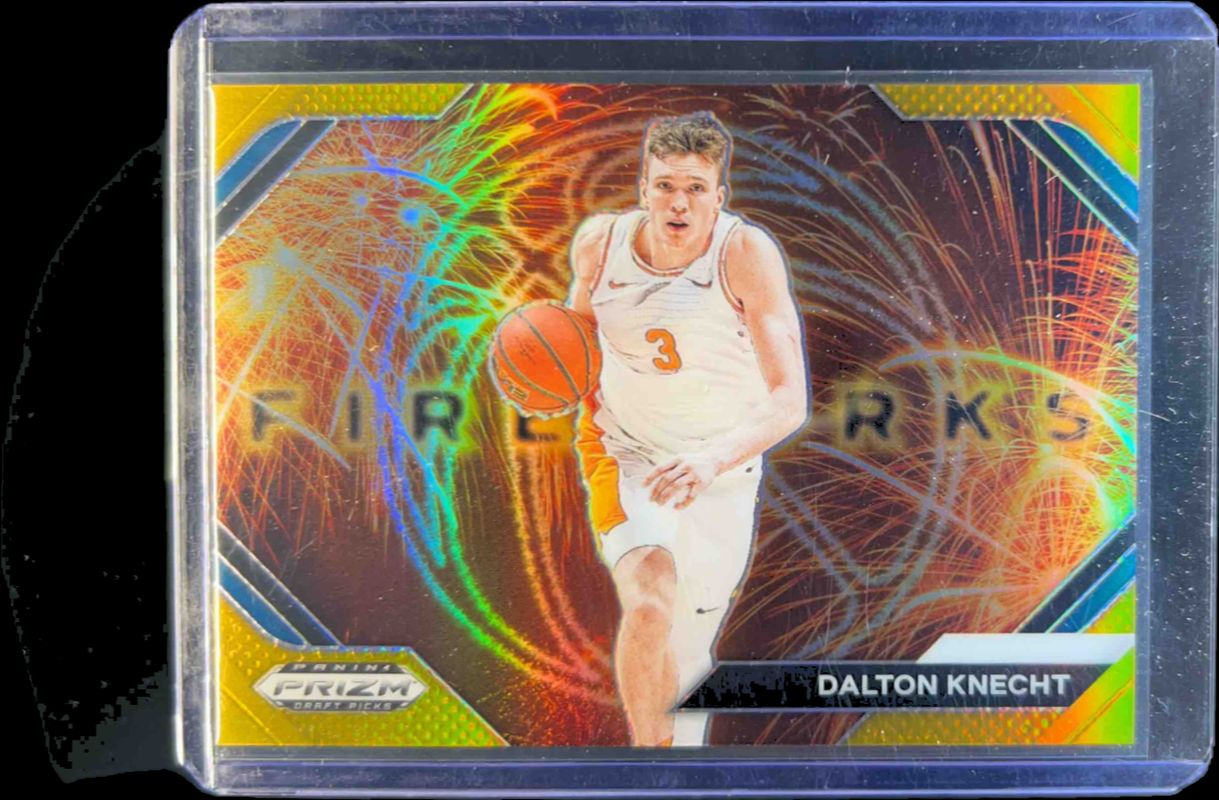 The Dalton Knecht 2024 Prizm Draft Picks #1 Fireworks - Gold /10 Rookie card is 1 of 222 Dalton Knecht's card variations in the 2024 Prizm Draft Picks set being tracked by Sports Card Investor, including #50 Base, #50b Base, #50 Variation, #50 Green, and #50b Green.
