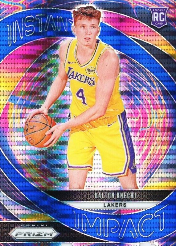 The Dalton Knecht 2024 Prizm #5 Instant Impact - Blue Pulsar /99 Rookie card in Raw condition has moved down -$2.16 (-55.2%) in the last 30 days and was last sold for $1.75 .