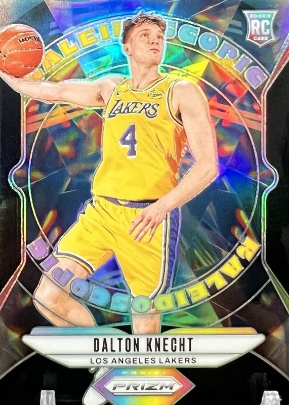 The Dalton Knecht 2024 Prizm #16 Kaleidoscopic - Black /1 Rookie card in Raw condition has not changed in price in the last 30 days and was last sold for $1,528.00 .