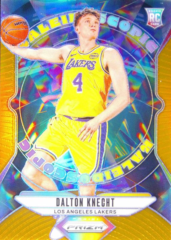 The Dalton Knecht 2024 Prizm #16 Kaleidoscopic - Orange /49 Rookie card in Raw condition has not changed in price in the last 30 days and was last sold for $9.50 .