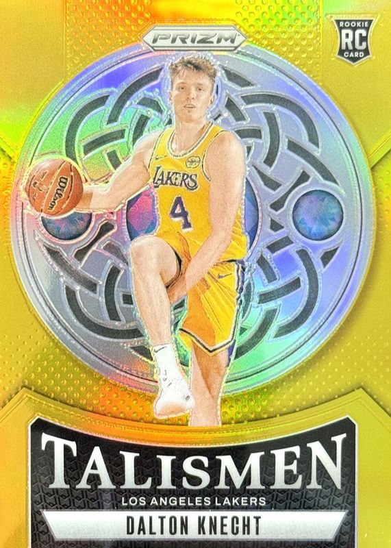 The Dalton Knecht 2024 Prizm #15 Talismen - Gold /10 Rookie card in Raw condition has not changed in price in the last 30 days and was last sold for $51.00 .