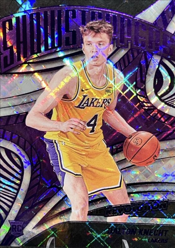 The Dalton Knecht 2024 Revolution #5 Showstoppers - Cosmic /99 Rookie card is 1 of 88 Dalton Knecht's card variations in the 2024 Revolution set being tracked by Sports Card Investor, including Base, Astro, Blue Storm, Chinese New Year, and Fractal.