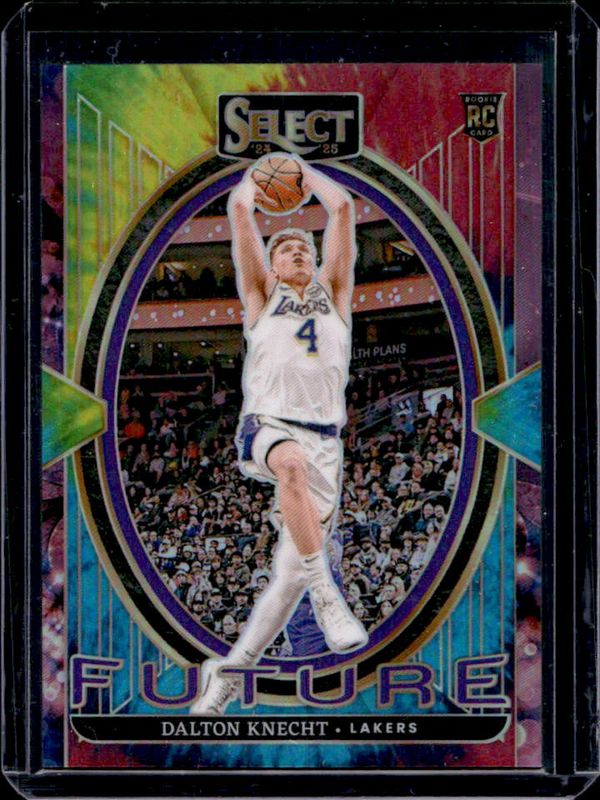 The Dalton Knecht 2024 Select #25 Select Future Tie-Dye /25 Rookie card is 1 of 353 Dalton Knecht's card variations in the 2024 Select set being tracked by Sports Card Investor, including Concourse, Courtside, Mezzanine, Premier Level, and Concourse Blue Cracked Ice.