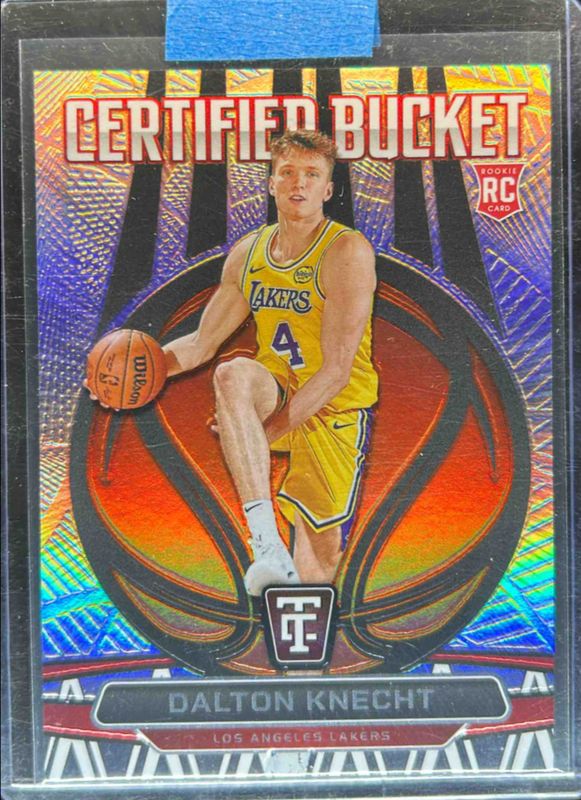 The Dalton Knecht 2024 Totally Certified #7 Certified Bucket Rookie card is 1 of 102 Dalton Knecht's card variations in the 2024 Totally Certified set being tracked by Sports Card Investor, including Base, Bronze Mirror, Maroon Mirror, Purple Mirror, and Mirror.