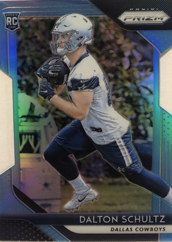 The Dalton Schultz 2018 Prizm #277 Light Blue Die-Cut /199 Rookie card in Raw condition has not changed in price in the last 30 days and was last sold for $0.99 .