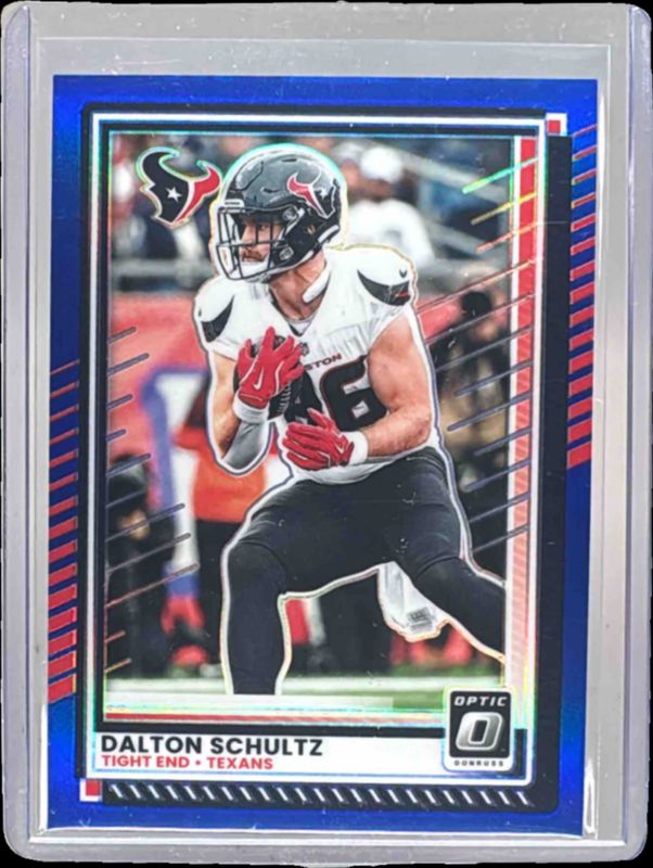 The Dalton Schultz 2025 Optic #22 Blue /249 card is 1 of 36 Dalton Schultz's card variations in the 2025 Optic set being tracked by Sports Card Investor, including Base, Holo, Neon Blue /399, Aqua /349, and Wave /300.