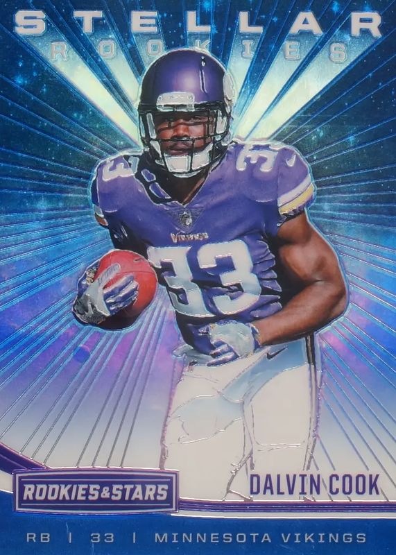 This card is 1 of 7 Dalvin Cook's card variations in the 2017 Rookies & Stars set being tracked by Sports Card Investor, including Stellar Rookies - Red /99, Stellar Rookies - Purple /49, Stellar Rookies - Orange /25, Stellar Rookies - Gold /10, and Stellar Rookies - Green /5.