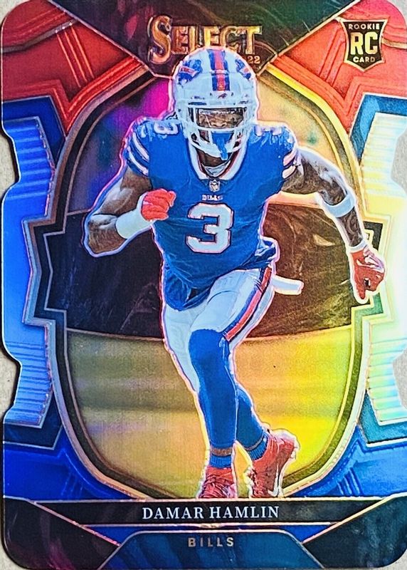 Damar Hamlin 2022 Select #100 Concourse Red & Blue Die-Cut Rookie RAW Price Guide