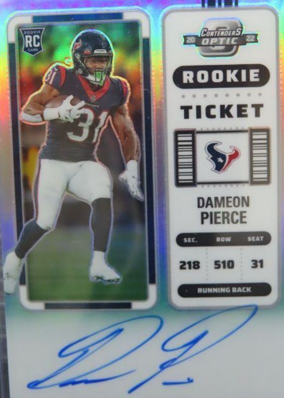 DAMEON PIERCE 2022 Contenders Optic Silver ROOKIE TICKET On-Card Auto 111 Texans