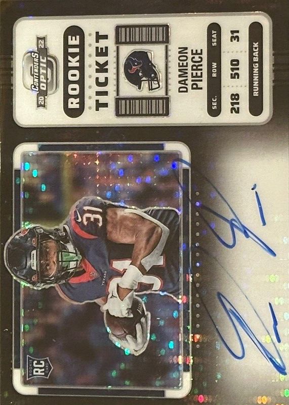 Auctions Ending Soon for Dameon Pierce 2022 Contenders Optic #111 Rookie Ticket Auto Variation - Black Pulsar /8 RAW