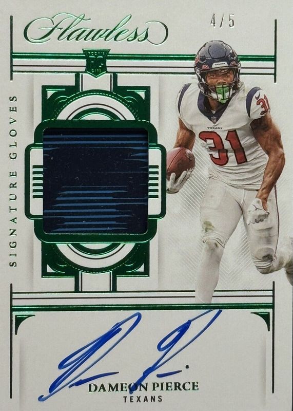 Dameon Pierce 2022 Flawless #SG-DP Signature Gloves - Emerald /5 Rookie RAW Price Guide