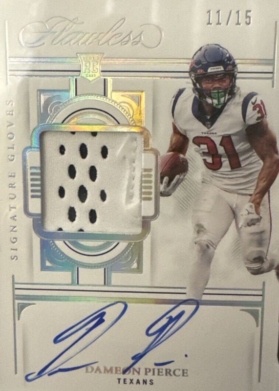 Dameon Pierce 2022 Flawless #SG-DP Signature Gloves - Silver /15 Rookie RAW Price Guide